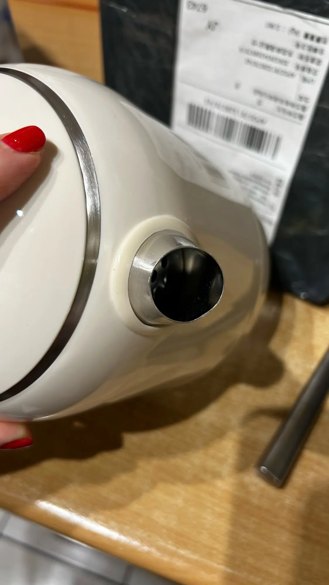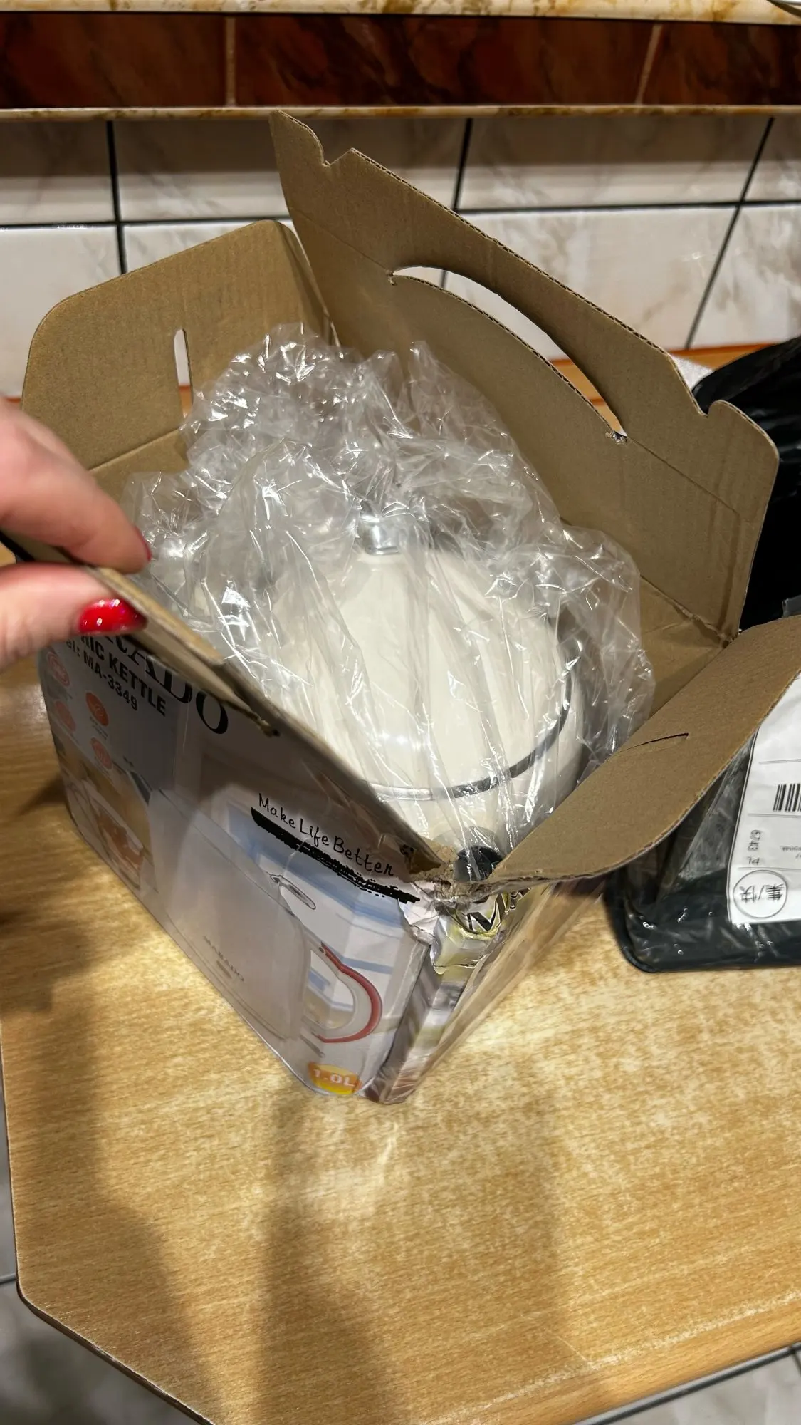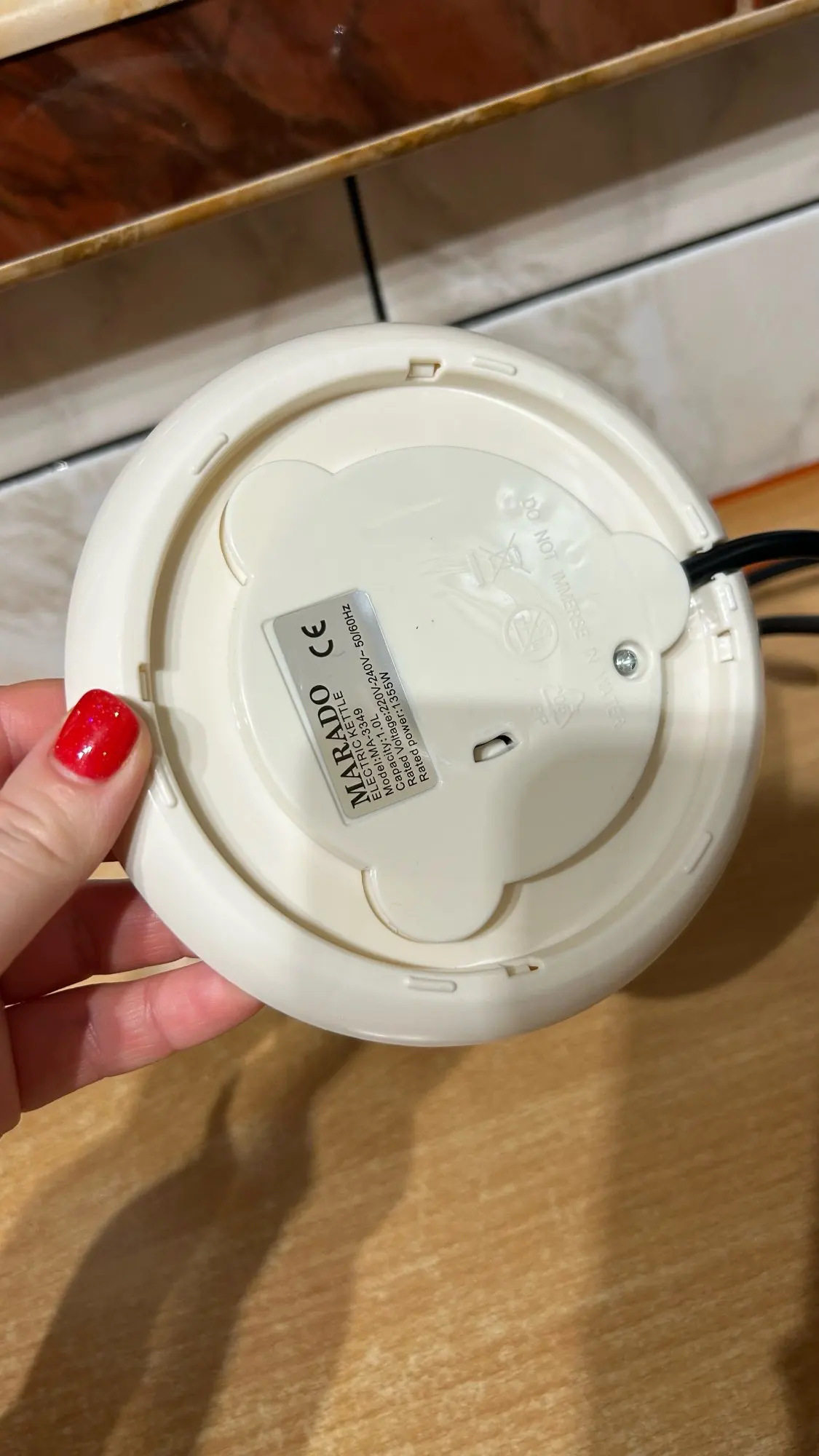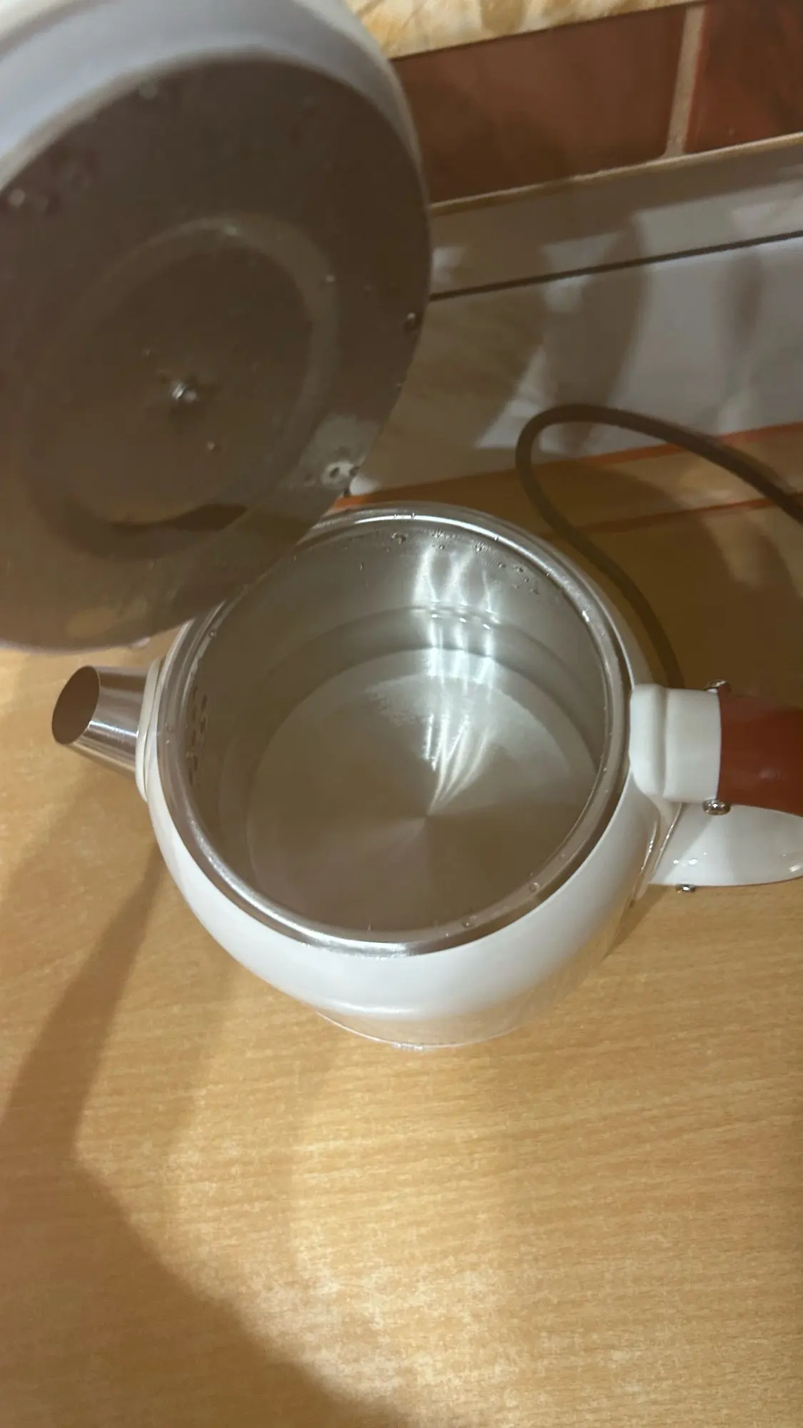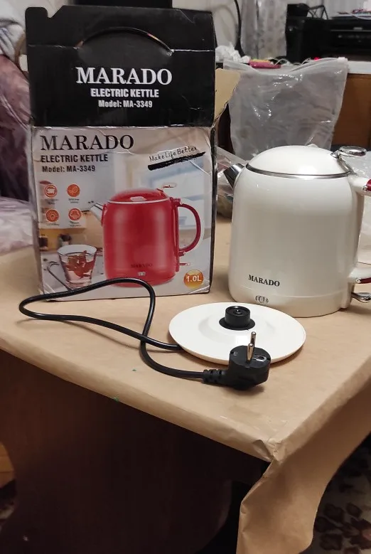 The box arrived dented and the spout on the teapot is also dented. 🫤 I would really like the seller to pack the product better inside the box. (Perhaps the carriers played football with it 😁) But anyway, the teapot is the same as in the picture. Half a teapot of water boiled in 3 minutes, and by the way, it is quite noisy. 😁 And the teapot stand is very slippery; I will need to buy some anti-slip things. The cord length is 60 cm.